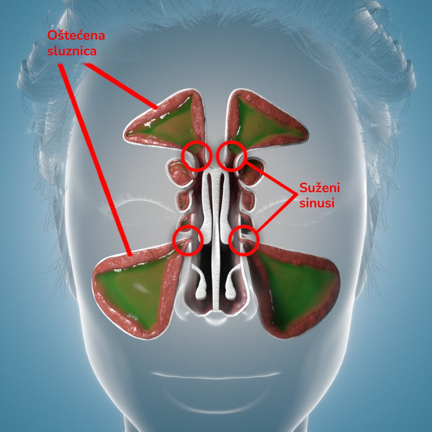 Svi vaši simptomi i bolovi rezultat su oštećenih sluznica i suženih sinusa.